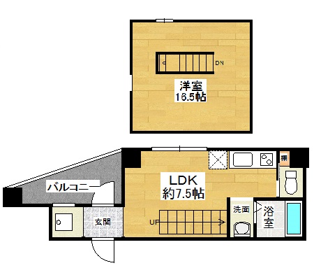 お部屋は45.3uメゾネットタイプの1LDK